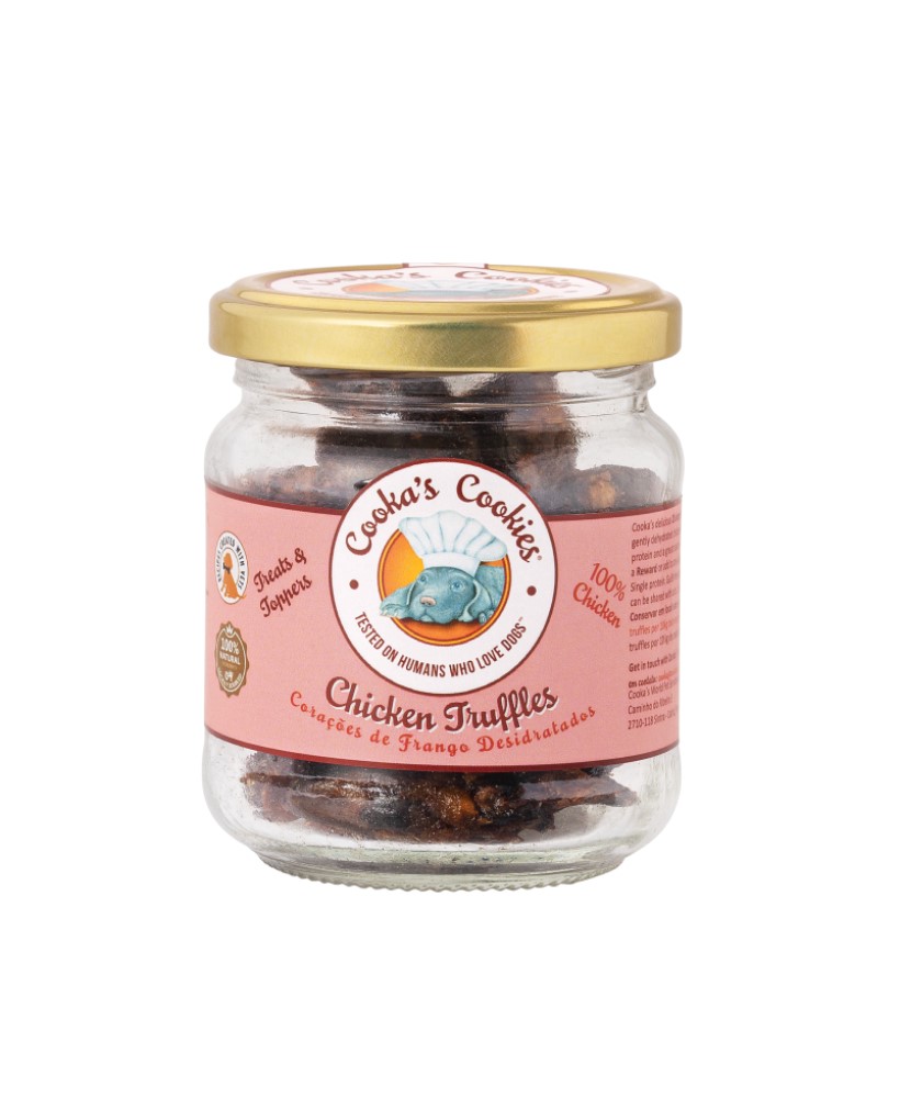 Cooka’s Chicken Truffles are crafted from pure chicken hearts that are gently air-dried to preserve flavor and nutrients. This lean protein snack is ideal for training or as an indulgent topper, supporting muscle health and coat condition with minimal fat. No wheat, no gluten, no artificial additives — just honest, natural goodness made with love in Portugal.