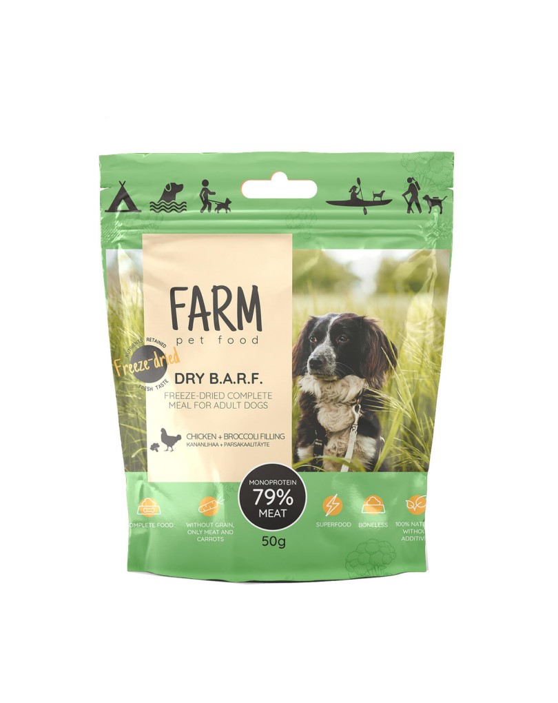 Chicken (chicken mass, chicken gizzards, chicken liver) 79%, broccoli, carrot, carrot fiber, flaxseed flour, vitamin- and mineral mix