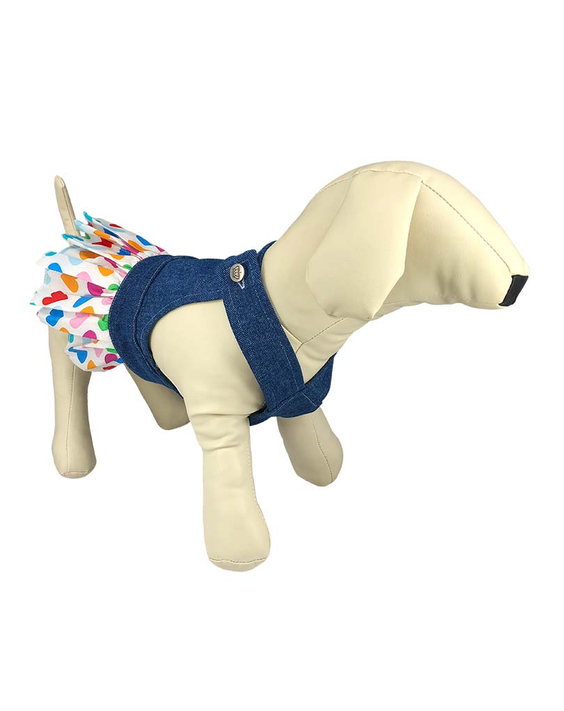 "The Multicolored Hearts Print" Blue Denim Pleated Salopette Dress