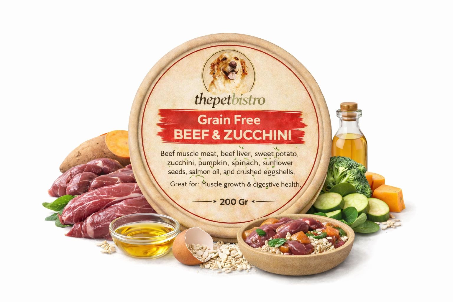 The Pet Bistro Grain free Beef and Zucchini Dog Meal 200gr-400gr