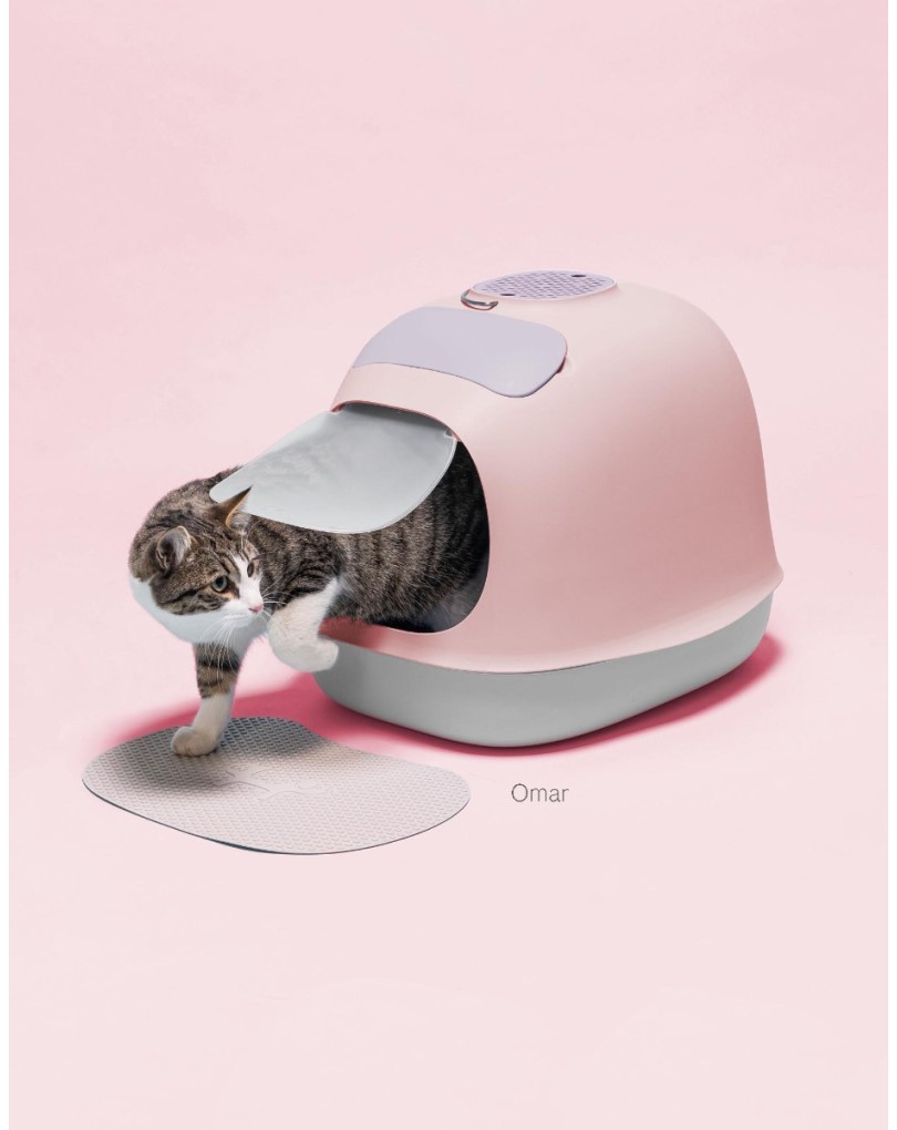 - The Minù Covered Cat Litter Box combines functionality with modern design. Its sinuous shape integrates seamlessly into home environments, adding a touch of elegance. The litter box is equipped with an interchangeable activated carbon filter hidden inside the casing to control odors. A practical scoop for cleaning is automatically lifted when the top door is opened, and a roll of hygienic bags is included for easy disposal. Made from 100% polypropylene, it's durable and easy to clean.
