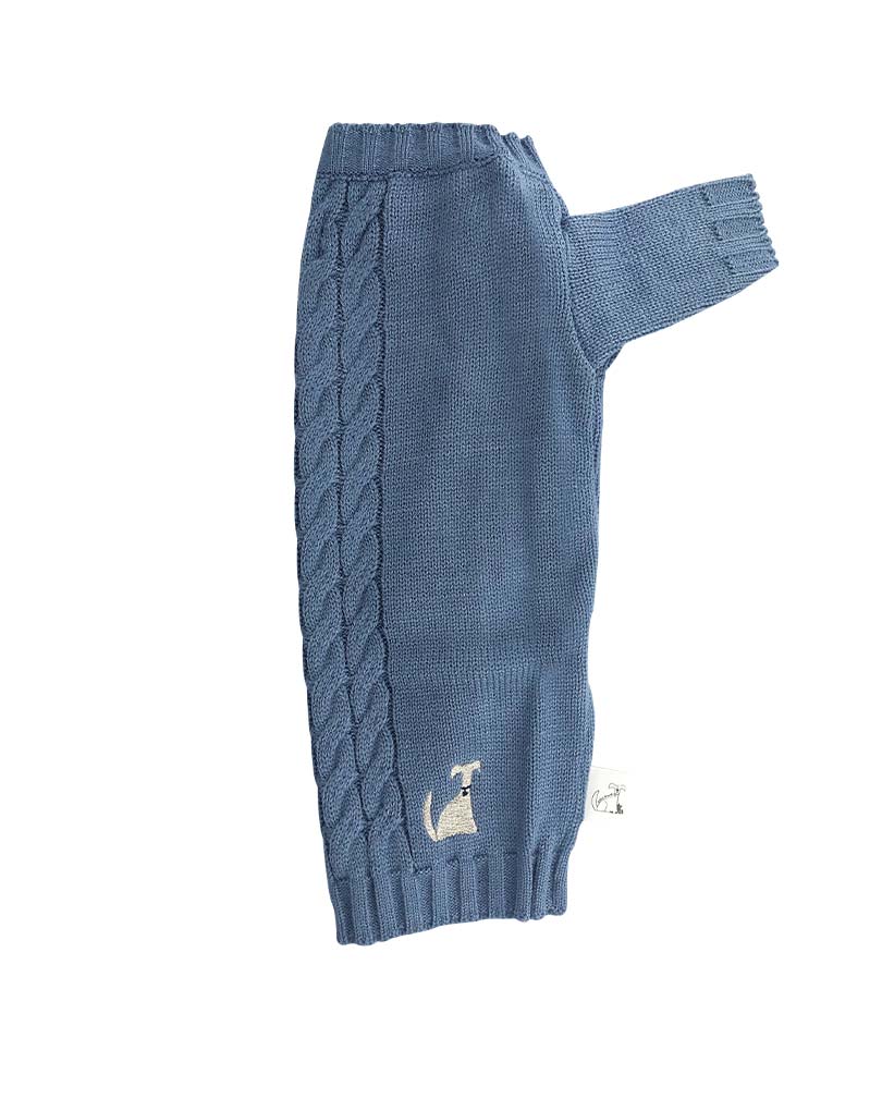The Embroidered L&F Dog Logo-light Blue Cable Knit Jumper