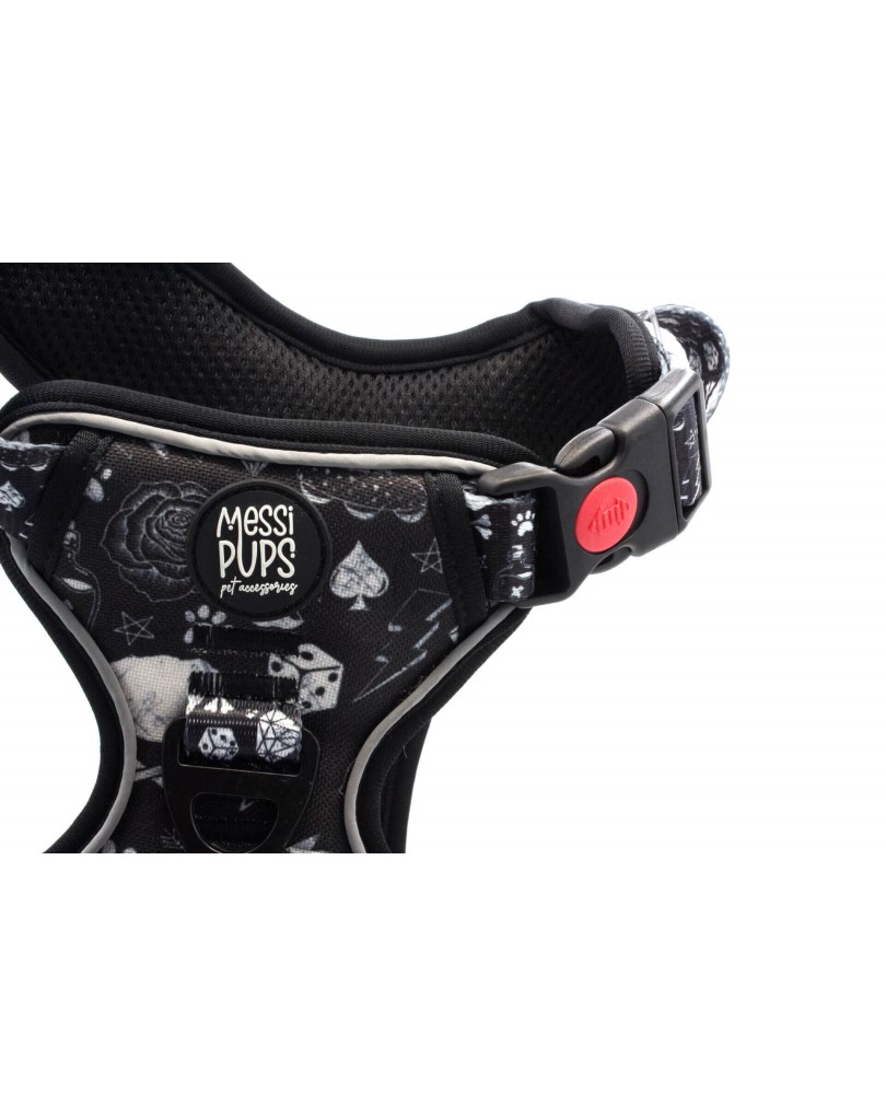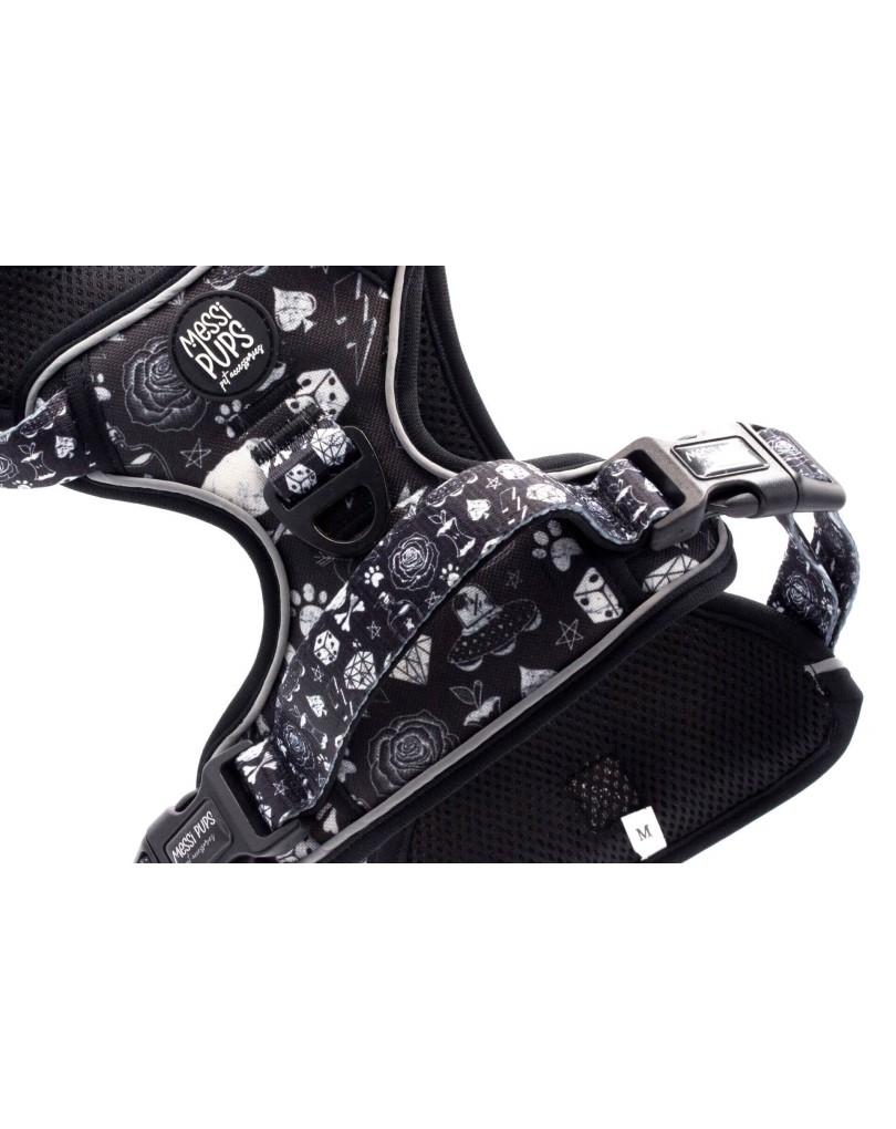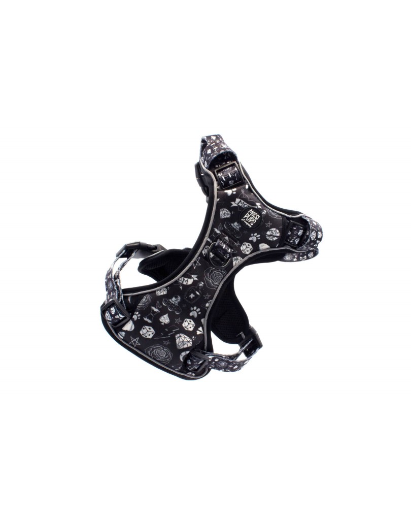 - Patterned material is durable water-repellent neoprene (top and under chest, making the pattern more visible than our OG Adjustable Harnesses, where the pattern is only visible under the chest area)