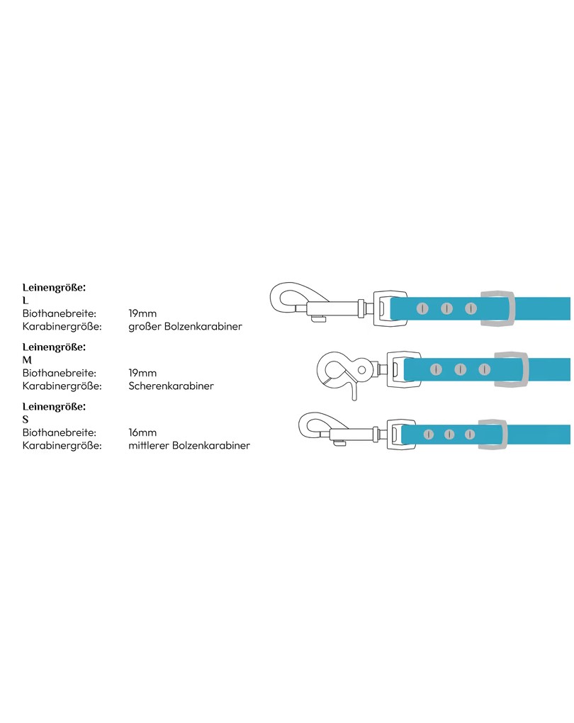 Biothane Leash Hefty silver 2m adjustable