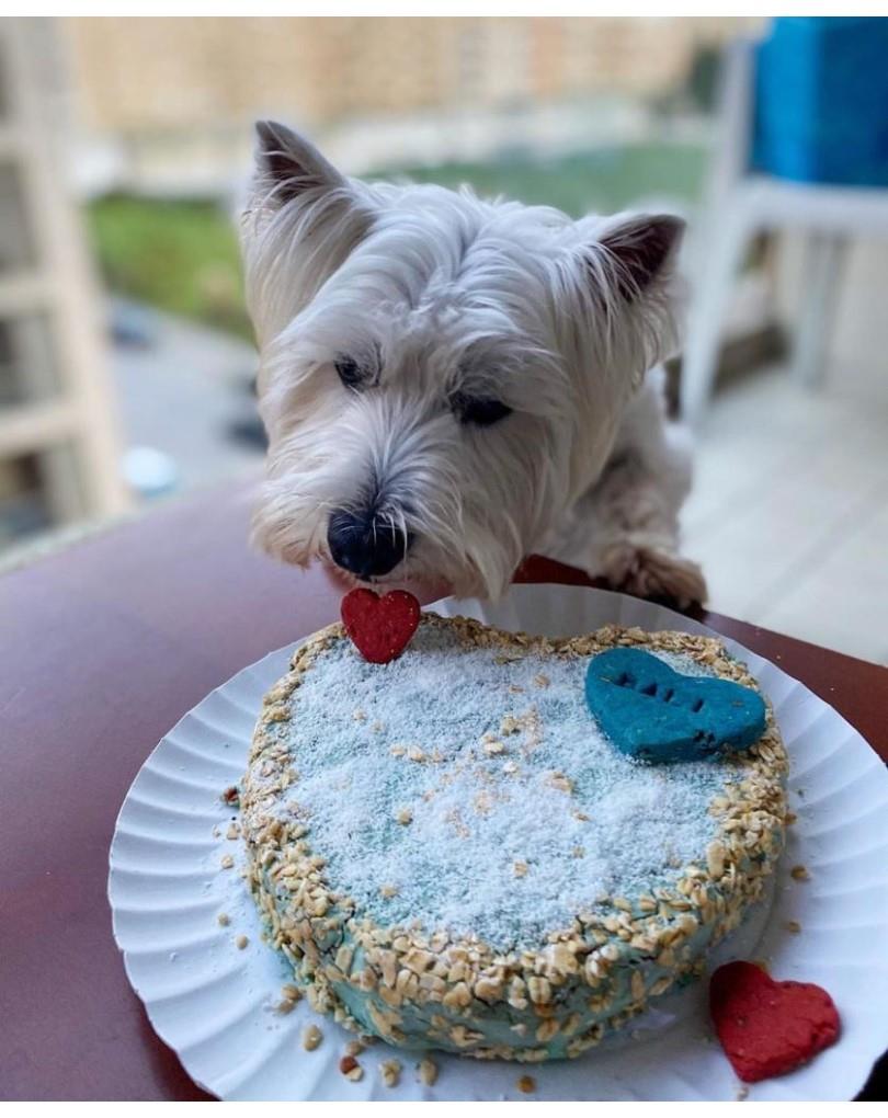 - To prepare, add 4 tablespoons of oil and 200–250 ml of water, mix well, and bake for 45 minutes at 180 °C. You can glaze with dog-safe toppings such as yogurt, peanut butter, or cream cheese.