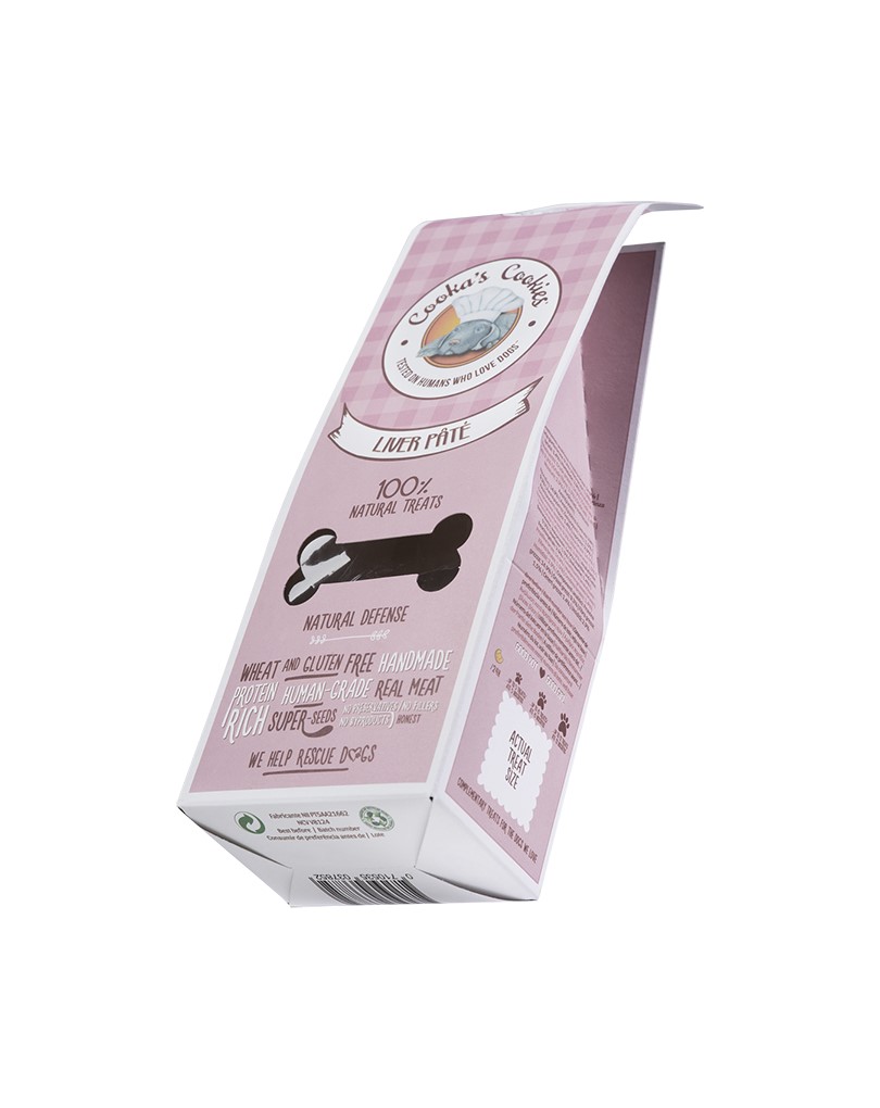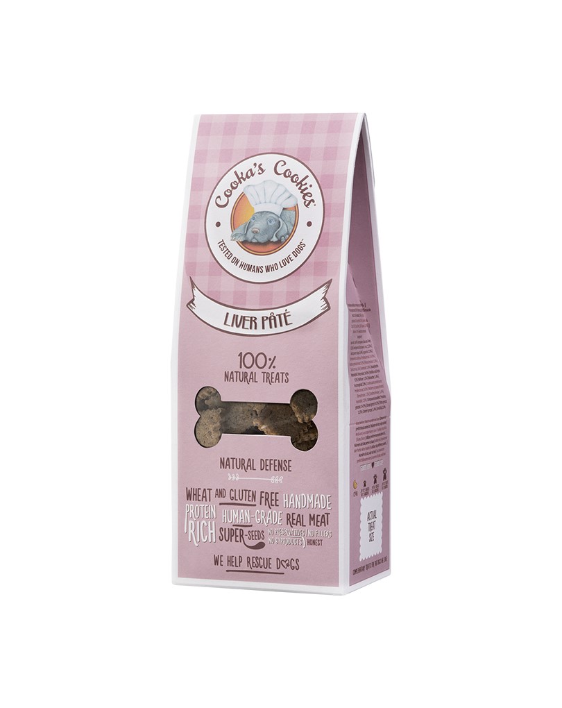 - Cooka’s Liver Pâté is crafted from fresh chicken and pork liver, gently cooked into a creamy texture dogs love. Packed with natural vitamins and minerals, it’s perfect for spreading on biscuits, filling toys, or serving as a special mealtime topper. Grain-free and free from artificial preservatives.