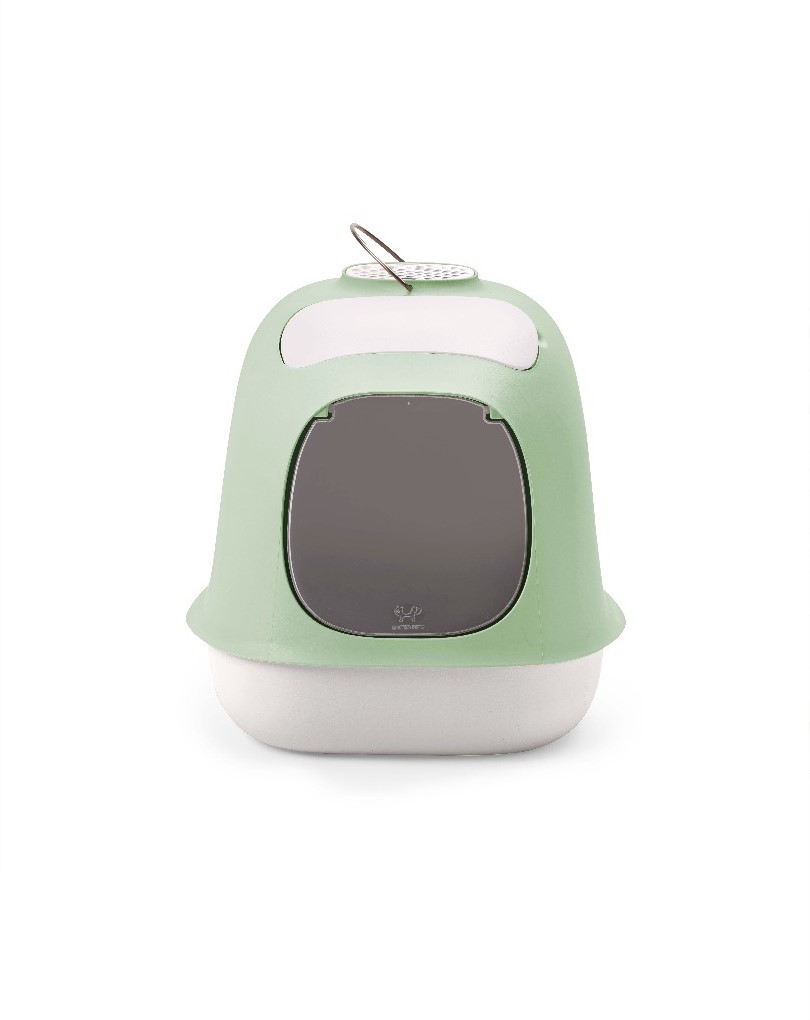- The Minù Covered Cat Litter Box combines functionality with modern design. Its sinuous shape integrates seamlessly into home environments, adding a touch of elegance. The litter box is equipped with an interchangeable activated carbon filter hidden inside the casing to control odors. A practical scoop for cleaning is automatically lifted when the top door is opened, and a roll of hygienic bags is included for easy disposal. Made from 100% polypropylene, it's durable and easy to clean.