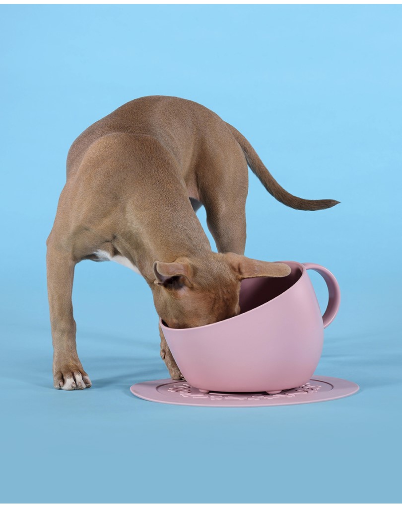 - The Set Cup Bowl in pink is designed for large dogs, holding up to 2500 ml of food or water. Its high, splash-proof rim prevents spills, and the non-slip rubber feet keep it stable during use. Made from 100% recycled plastic, it's both eco-friendly and dishwasher-safe. The set includes a matching anti-slip mat with a diameter of 35.5 cm.