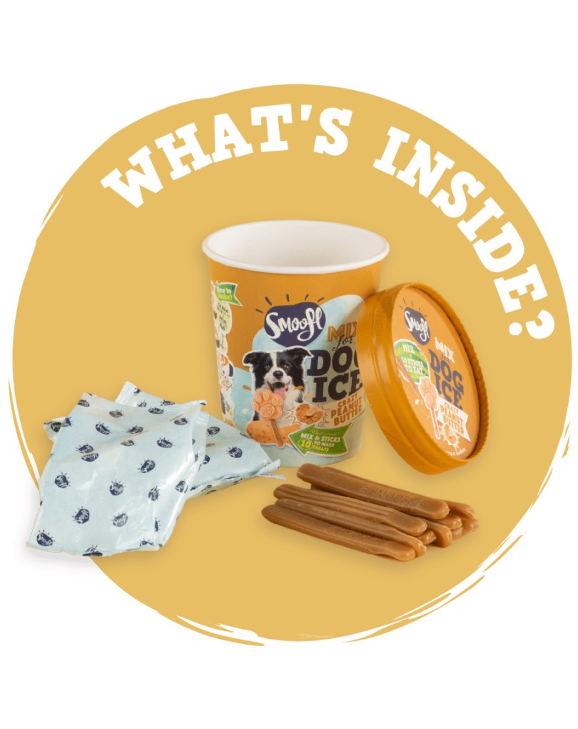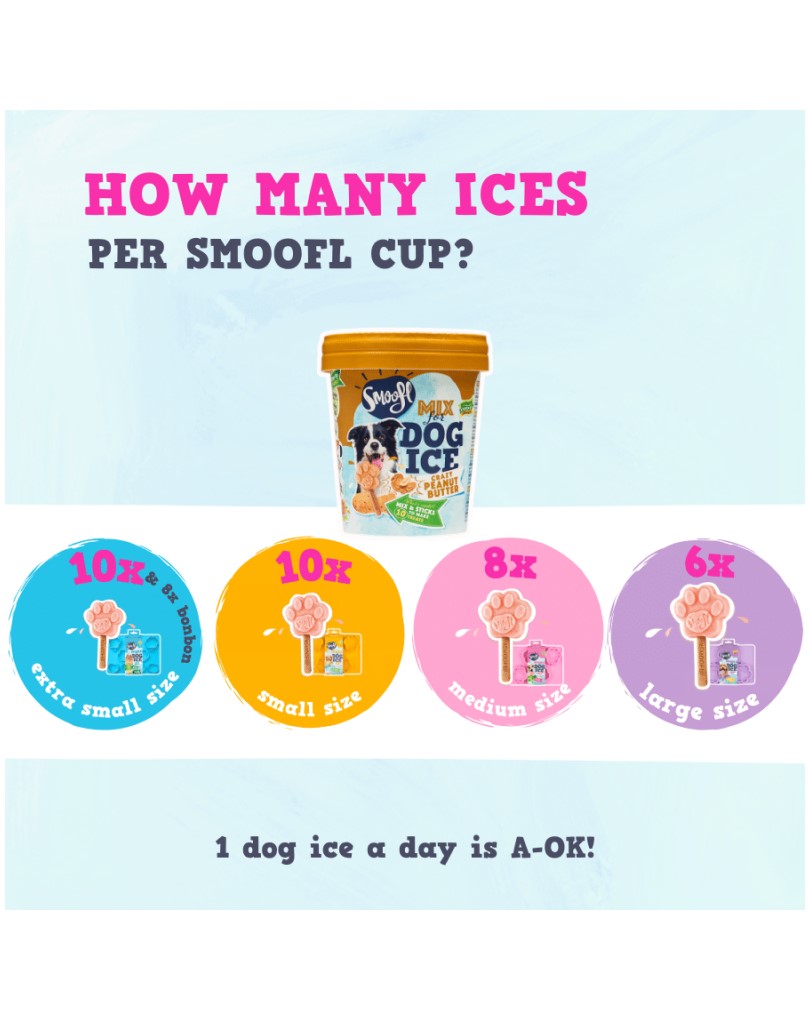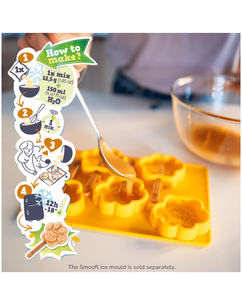 - “Spoil your furriend with our Smoofl Mix for Dog Ice in the flavor Peanut Butter. The mix comes with 10 edible sticks … Ready in just 60 seconds … The Ice Treats are 100% tailored to your pawesome friend and are lactose-, grain- and fat free so every dog can Smoofl with gusto.”
