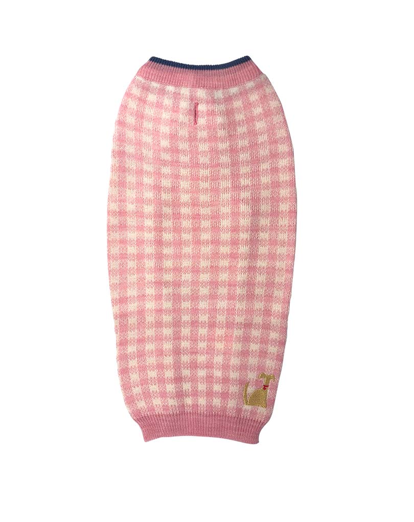The Embroidered L&F Dog Logo Pink Gingham Cable Knit Jumper